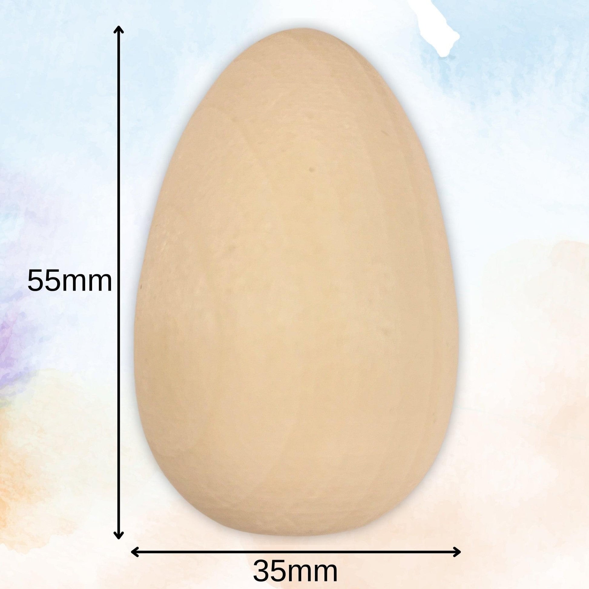 Made from beach-wood, these eggs are solid and durable. Each wooden egg is 5.5cm tall and has a diameter of 3.5cm, making them the perfect wooden eggs to paint decorate and craft.