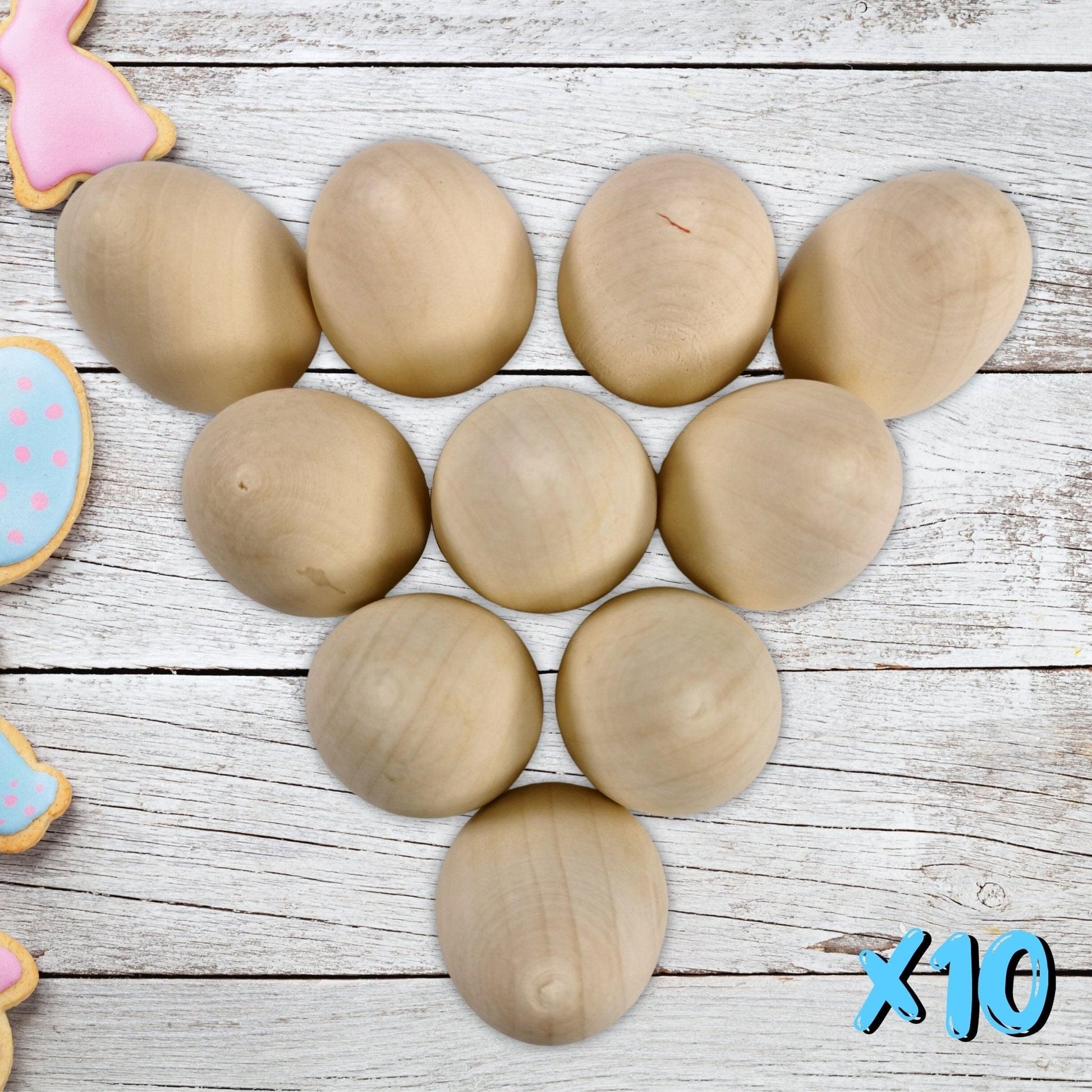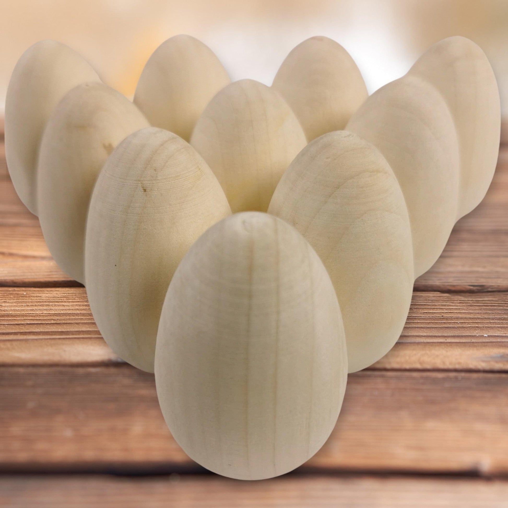 10 plain craft wooden eggs, enough for the whole family to enjoy.