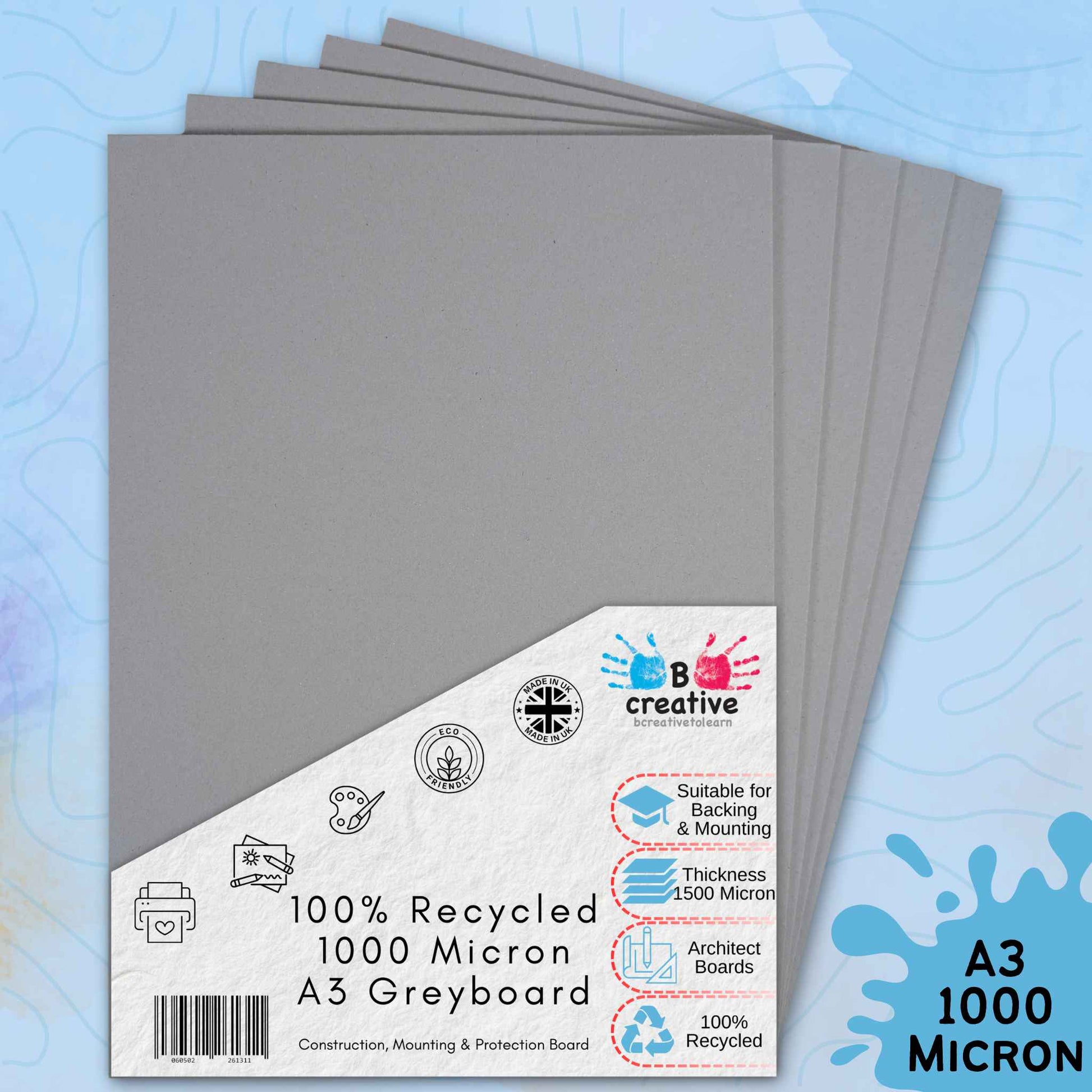A3 Greyboard Sheets – 1000 Micron (1 mm) Heavyweight | Multiple Quantities, Recycled Craft & Mount Board