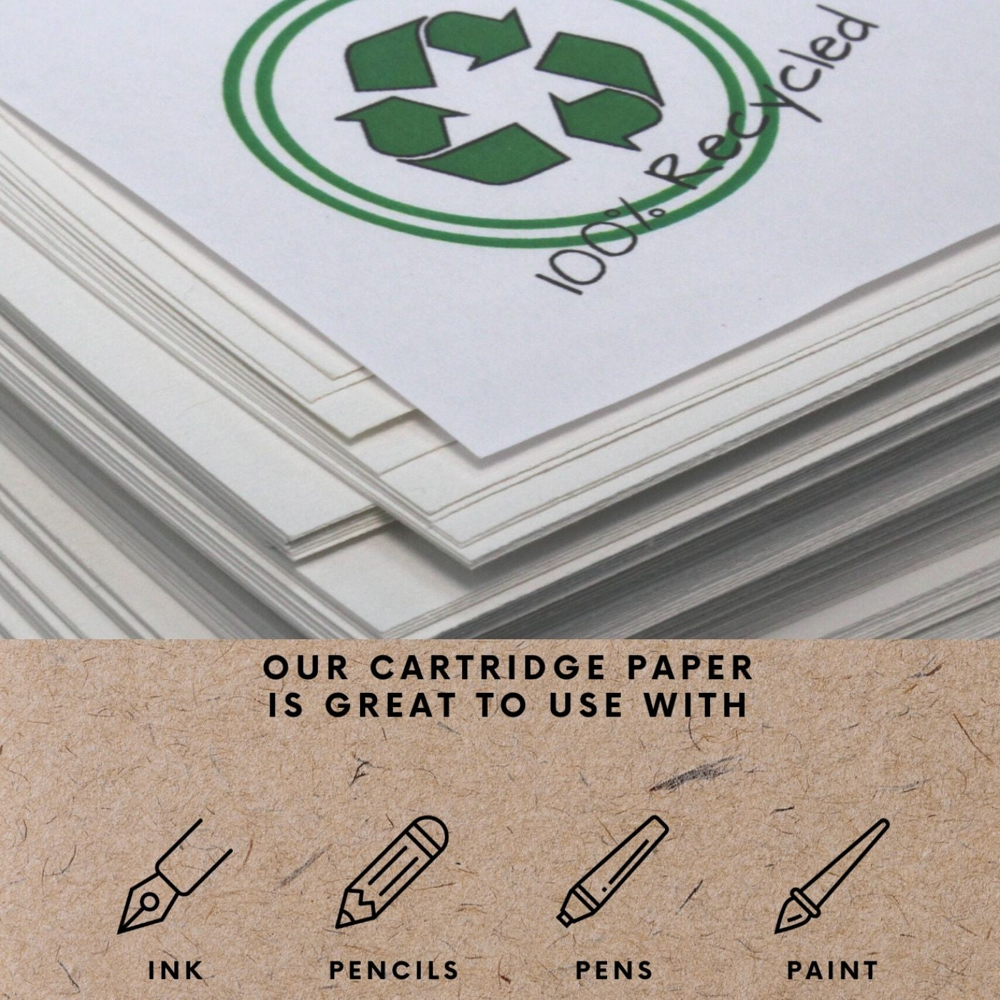 This 100% recycled cartridge paper is ideal for various media, including charcoal, sketching pencils, markers, drawing inks, and paints.