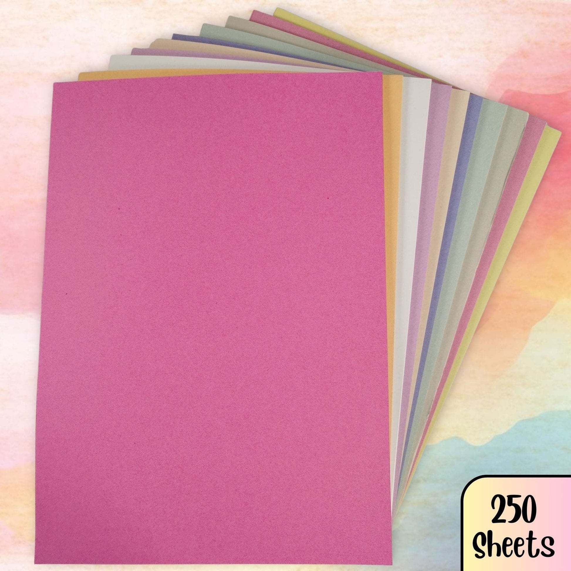 This pack of A4 sugar paper contains 250 sheets of 100gsm pastel coloured paper in a mix of 10 shades: Light Red, Orange, White, Lilac, Buff, Blue, Green, Grey, Pink & Yellow, so you'll have plenty of options when it comes to producing your creative vision.