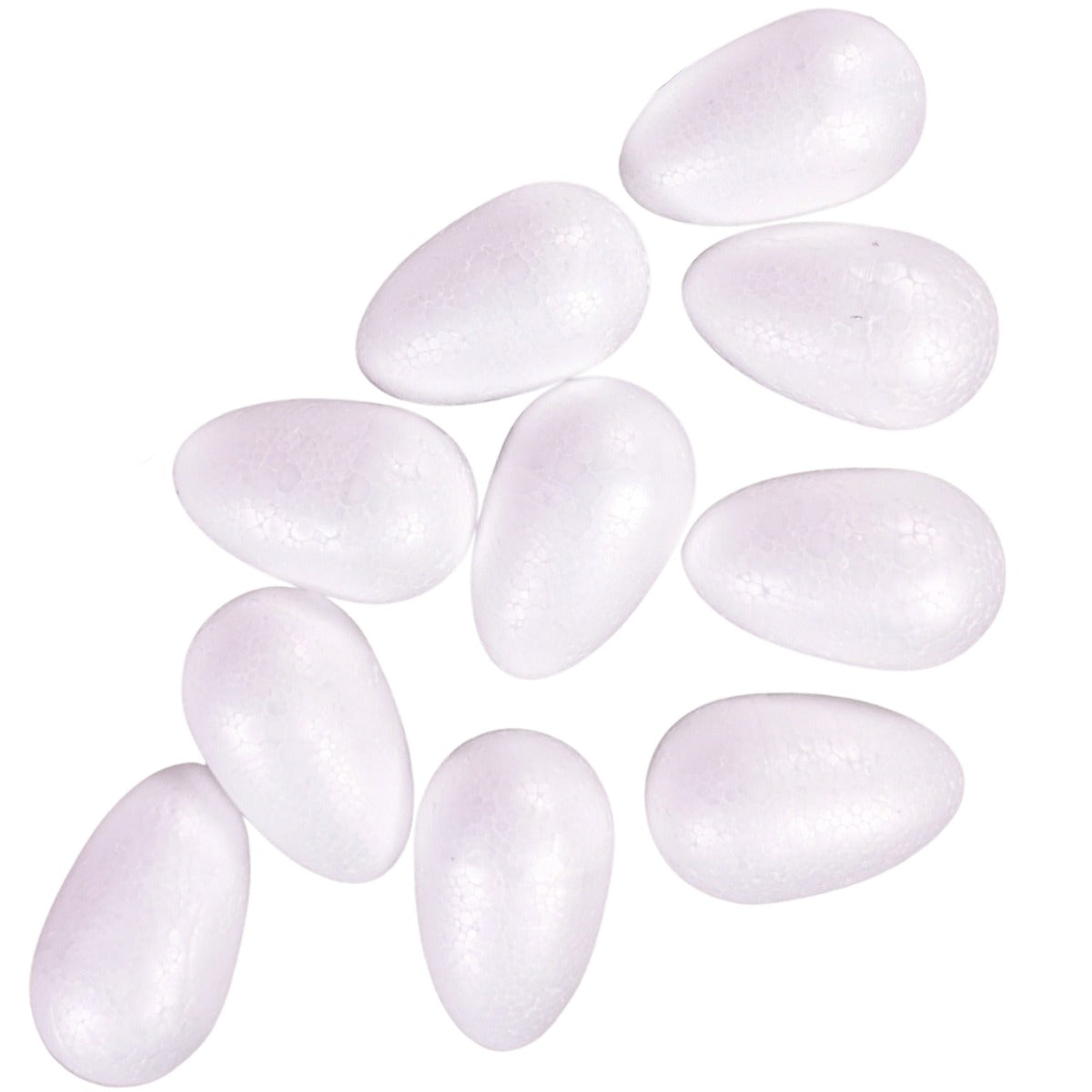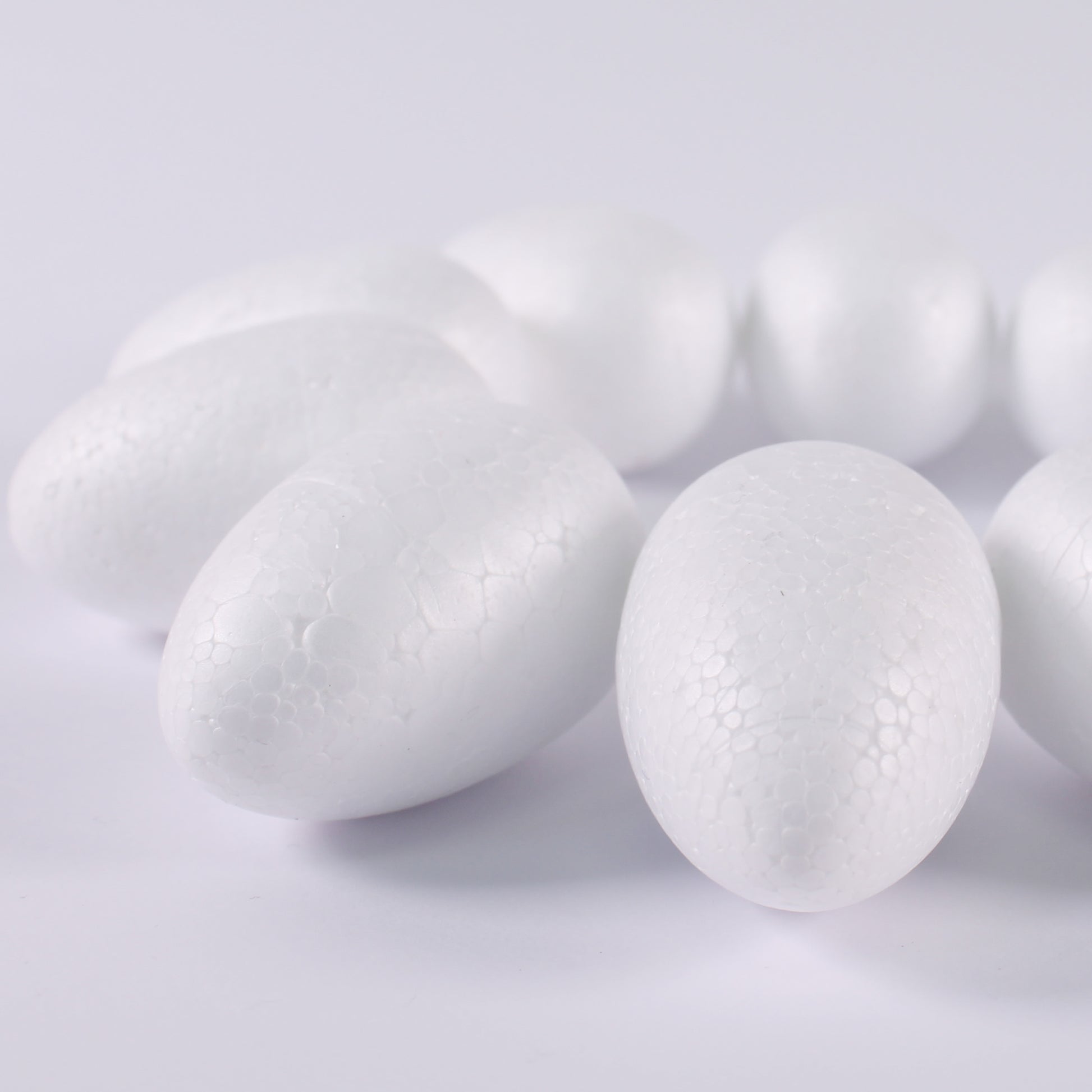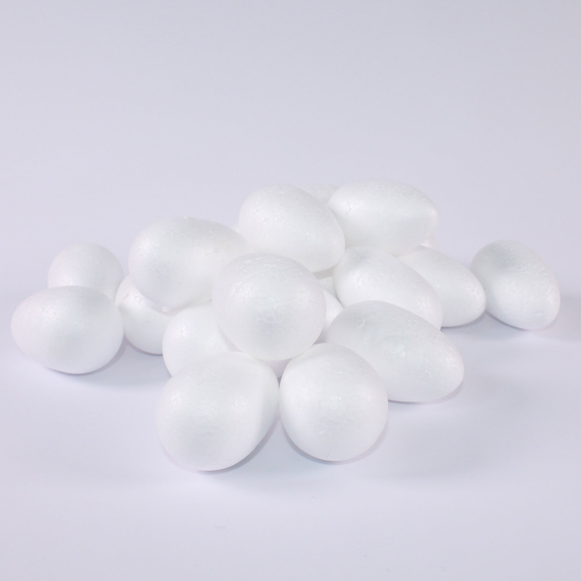 This value pack of solid 3D Polystyrene Egg shapes contains 8cm eggs measuring in at 80x55mm.